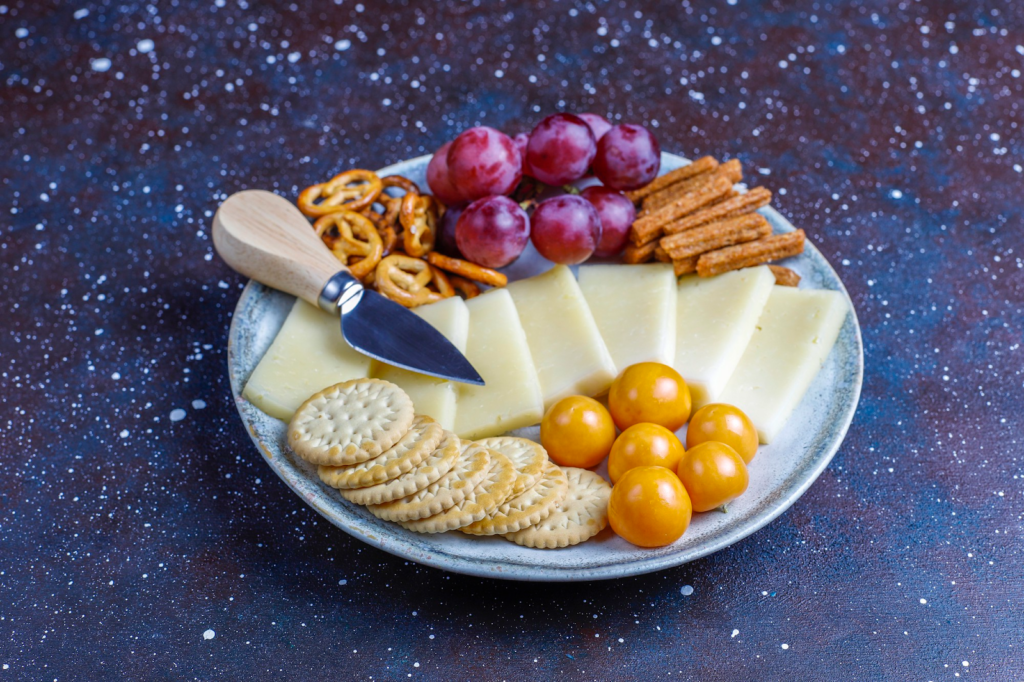 To assemble, grab a large wooden board. Throw on some crackers, cheese slices, cherry tomatoes, cucumber sticks, hummus, and any deli meat (ham or salami) you have in the fridge. That’s it! Kids will love these ‘picky bits’ because they have control over what they eat. As for the parents, you’ll love it because there are no plates to wash later.